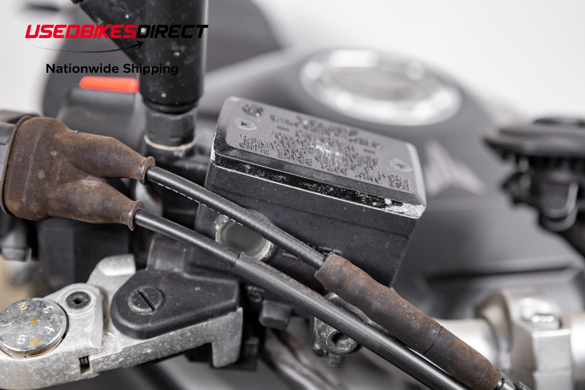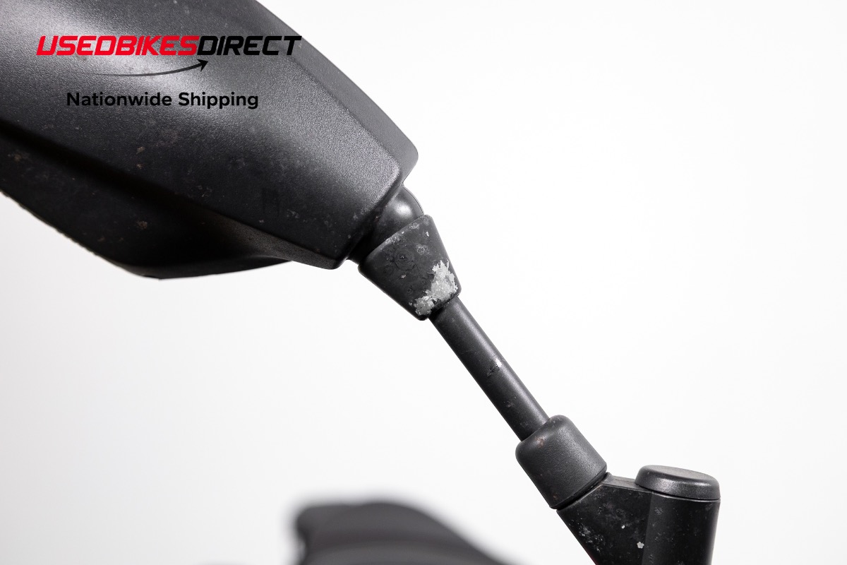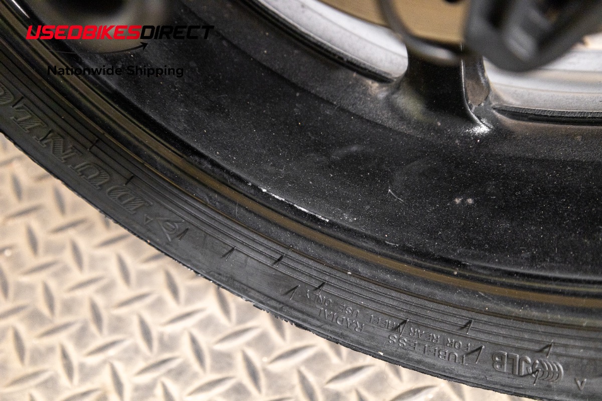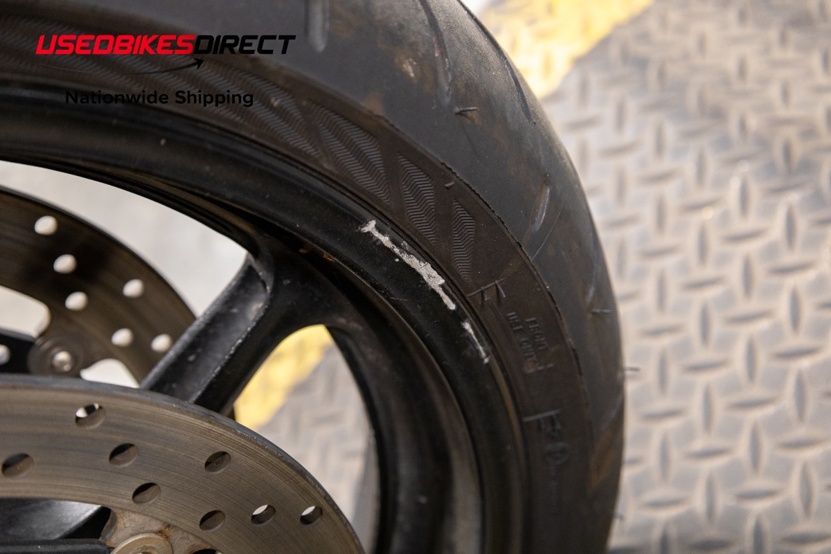 Curb rash on wheels, scrapes on mirror hardware and fron't brake reservoir, white specs on exhaust.
