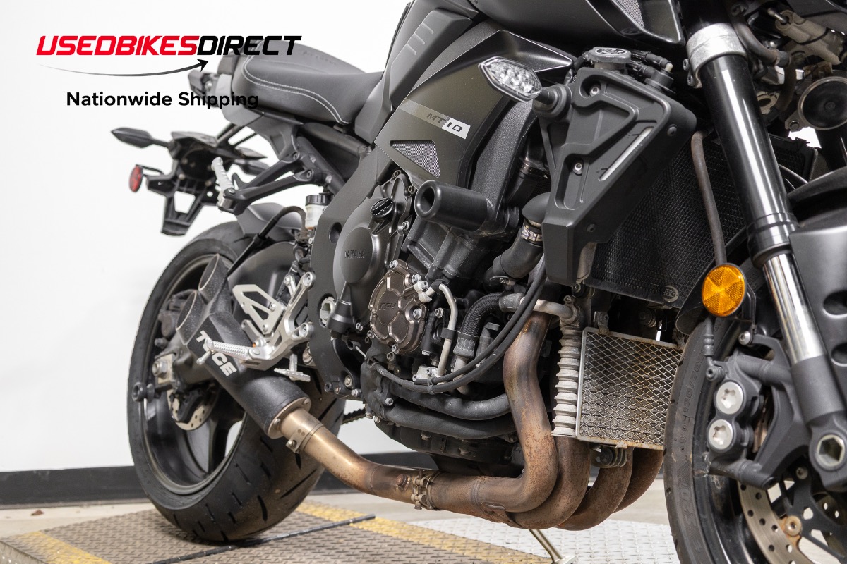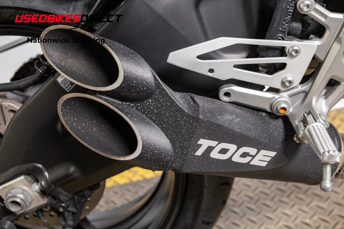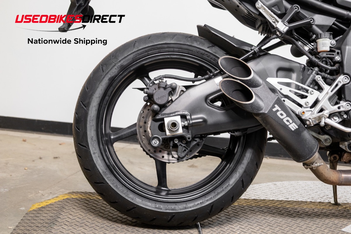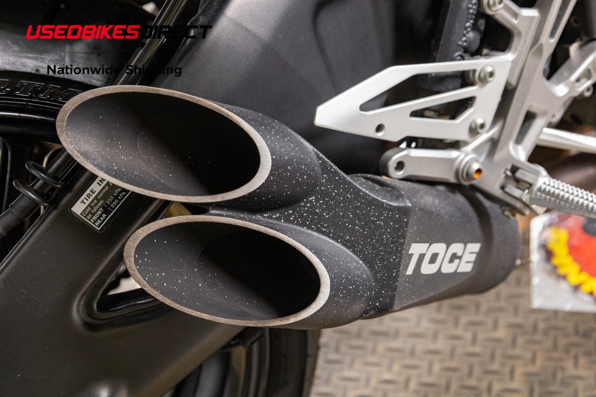Curb rash on wheels, scrapes on mirror hardware and fron't brake reservoir, white specs on exhaust.